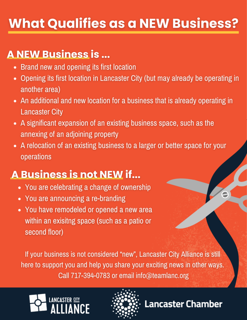 Lancaster City Alliance wants to help you celebrate your new business or new location in Lancaster City with a Ribbon Cutting Ceremony. Fill out the request form below at least three weeks ahead of your requested date, and we'll work with you to celebrate your grand opening in style.